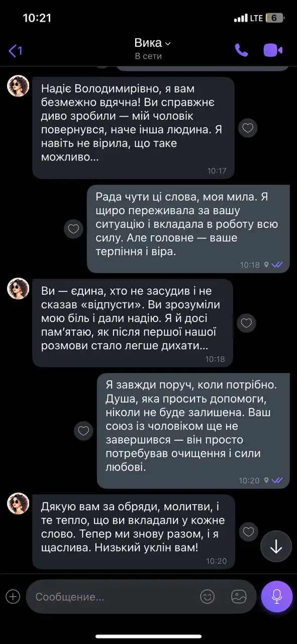 У своїй роботі я використовую лише перевірені методи: православні молитви та обряди – жодної чорної магії. Результат моєї роботи – це результат, який ви отримуєте.