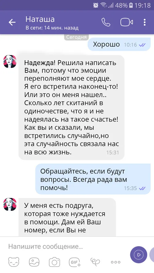 Вітаю вас! Ласкаво прошу до мого офіційного сайту. Мене звуть Надія Володимирівна. Вже довгий час я допомагаю людям із різних куточків світу. Всі жінки в нашій сім'ї мали унікальні здібності: вони передбачали майбутнє, допомагали знаходити радість у житті, здоров'ї та благополуччі.